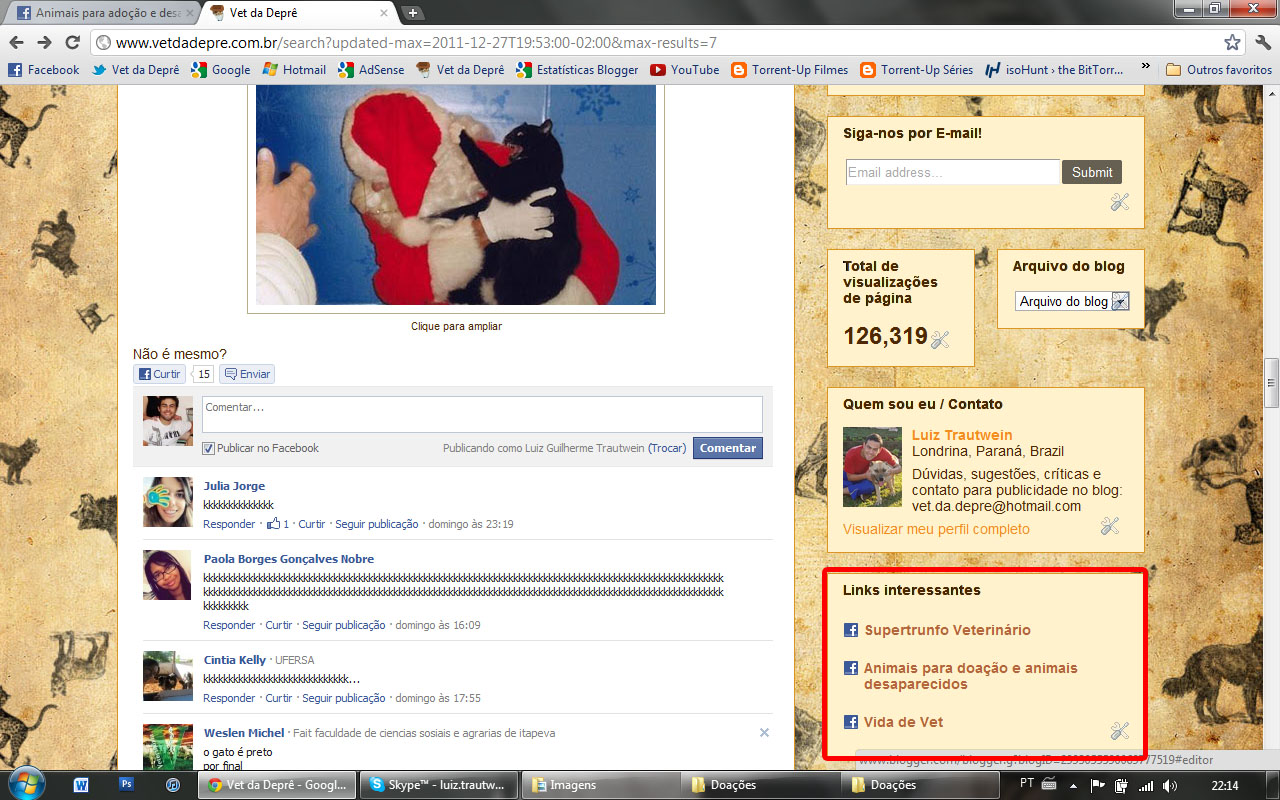 Pessoal, como havia prometido, devido ao grande número de “compartilhamentos” que recebo através do facebook, criei o espaço para vocês divulgarem caso tenham animais para doações e animais desaparecidos.