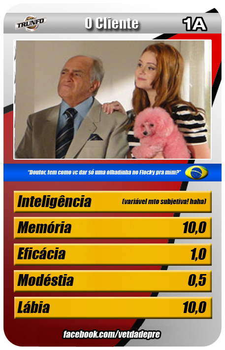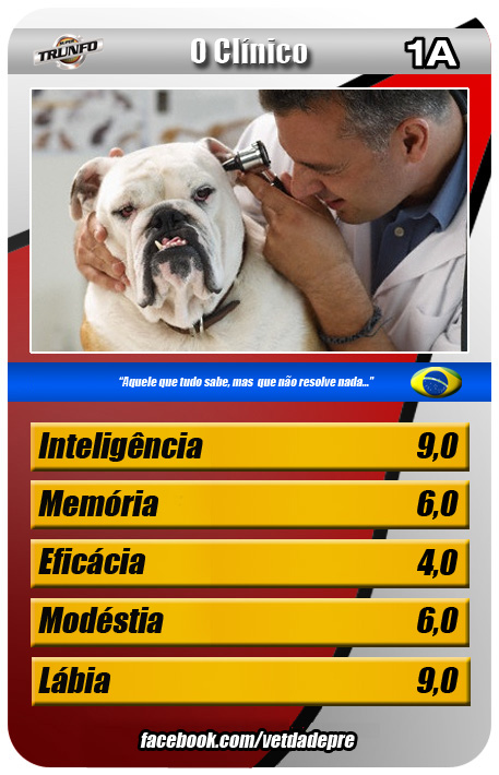 Humor Supertrunfo Veterinário Mais sugestões de cartas são muito bem vindas! Luiz Guilherme Corsi18/01/2012, 20:1618/01/2012 0 2163
