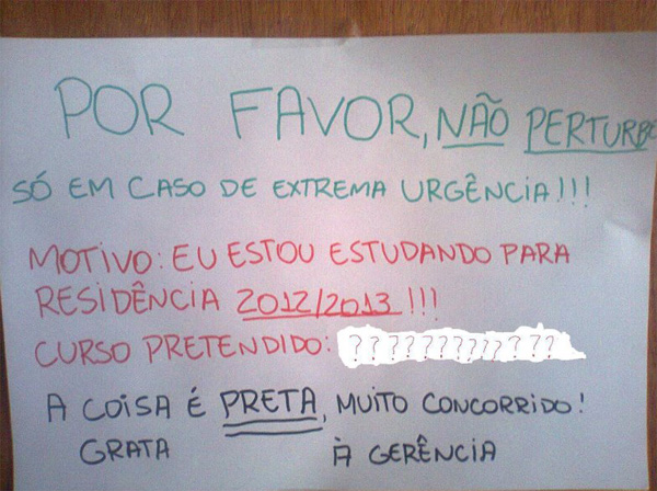 Humor FAVOR NÃO PERTURBAR Um recadinho para os pais nos ajudarem, ou demais paredentes… hahaha (via Medicina Depressão) Tweetar Luiz Guilherme Corsi13/01/2012, 20:4413/01/2012 0 1237