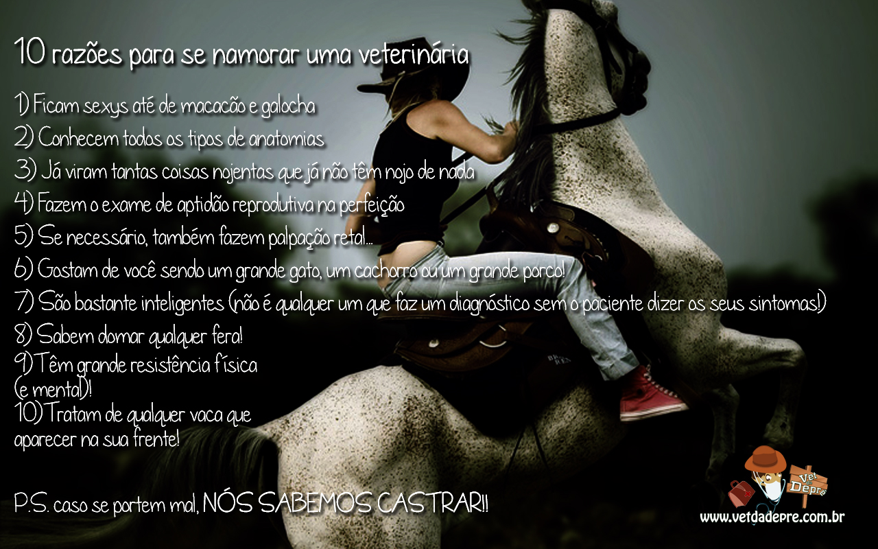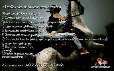 Humor 10 razões para se namorar uma veterinária Clique para ampliar Luiz Guilherme Corsi20/12/2011, 16:3620/12/2011 2 2463
