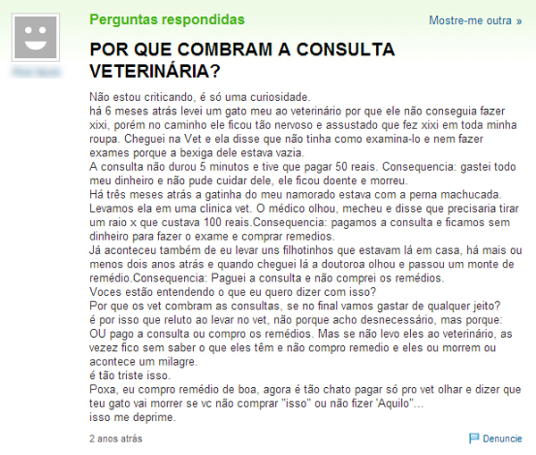 Humor “Por que cobram a consulta Veterinária” (RESPOSTAS, Yahoo) Como sempre o Yahoo Respostas nos trazendo excelentes questionamentos! – Só que não. HAHAHA’ Luiz Guilherme Corsi04/01/2013, 10:2004/01/2013 19 3298