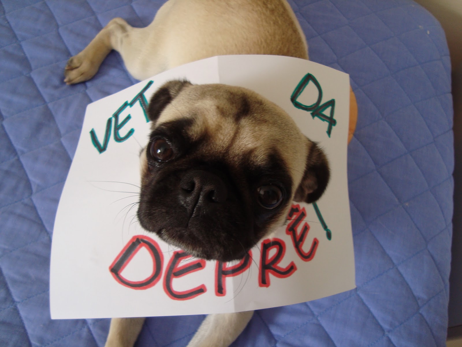 Pessoal, está é a Pug de 10 meses de idade que sofre com as artimanhas de sua dona se chama Nalu. Sua dona Camila faz medicina veterinária na UDESC. Como sempre, ela quis comer o papel durante as fotos, mas acho que deu certo, né? hehehe