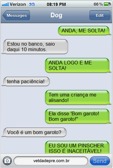 Humor E se os cachorros tivessem um iPhone? PARTE 2! Luiz Guilherme Corsi20/06/2012, 21:4820/06/2012 2 1174 Segunda parte da postagem E se os cachorros tivessem um iPhone? Hahahahaha Créditos ao Tumblr Text From Dog! Previous ArticleVeterinária não é cursoNext ArticleVéi, na boa…