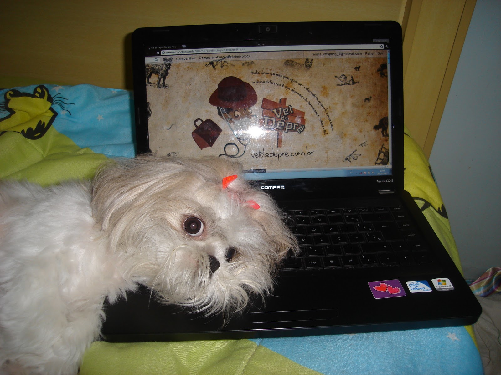 Este Shitzu é a Yumi, cãozinho de estimação da Renata, que prestou vestibular para vet na UFMG e está esperando o resultado. Seu facebook é http://www.facebook.